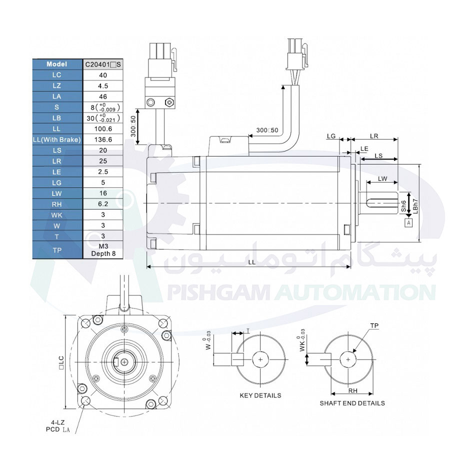 امکان تجهیز سروو موتور به ترمز (Brake)، روغنبند (Oil Seal) و سایر لوازم جانبی برای تطابق بهتر با نیازهای متنوع صنعتی. -
