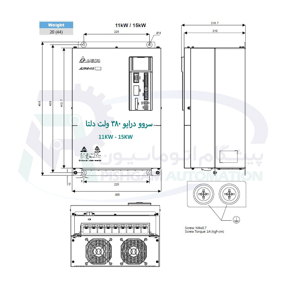 مشخصات سروو موتور 11 کیلو وات A2 دلتا بدون ترمز 1500دور