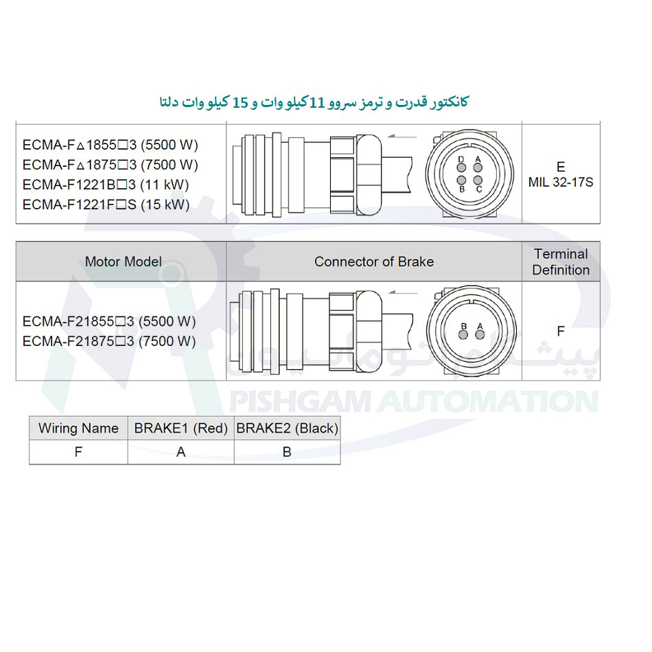 نحویه اتصالات و سیم بندی سروو موتور 11 کیلو وات A2 دلتا بدون ترمز 1500 دور