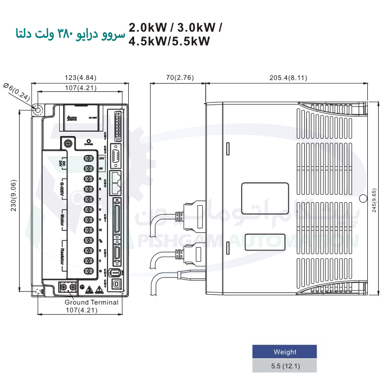 حفاظتهای داخلی: حفاظت در برابر اضافه ولتاژ، اضافه جریان، گرم شدن بیش از حد، خطای انکودر و اتصال کوتاه