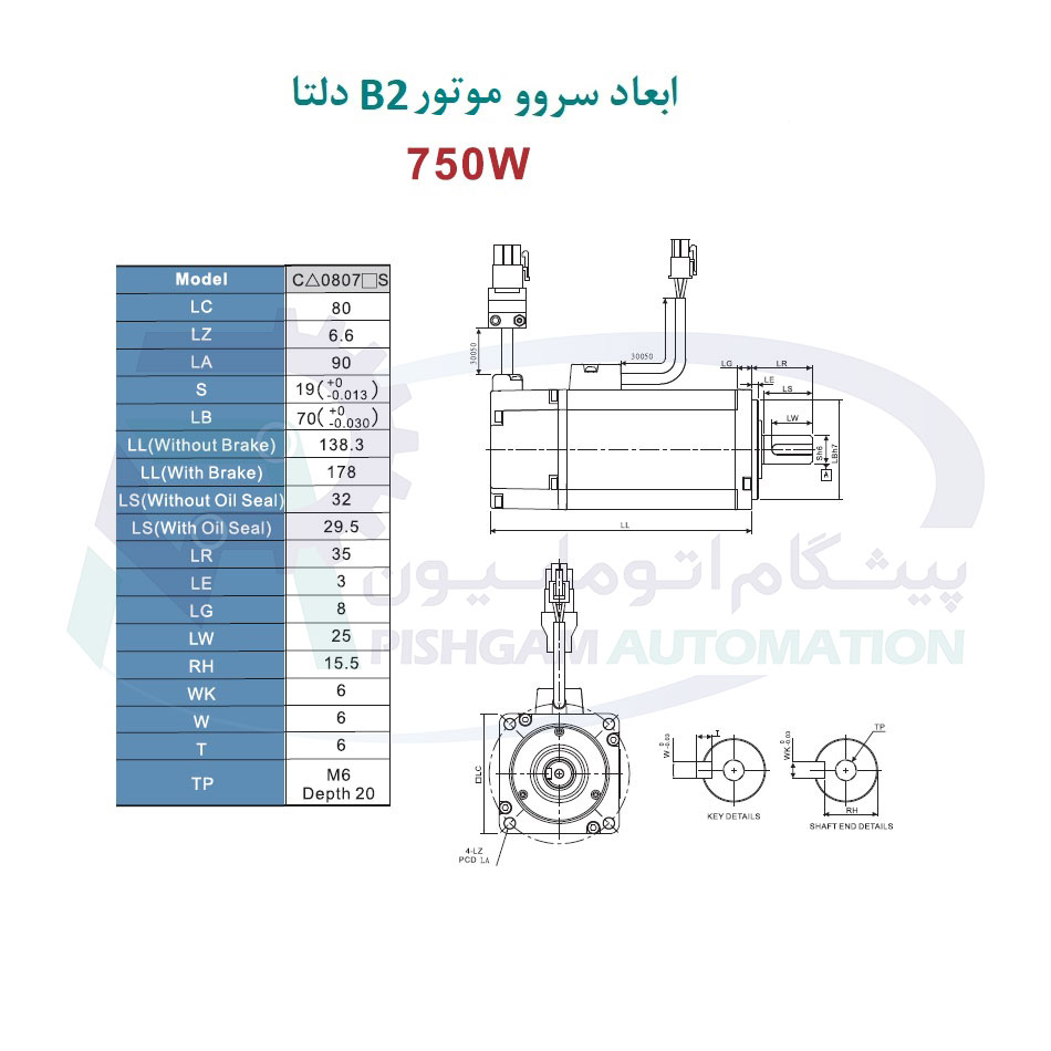 مشخصات پک کامل سروو موتور 750 وات دلتا B2 بدون ترمز 3000 دور